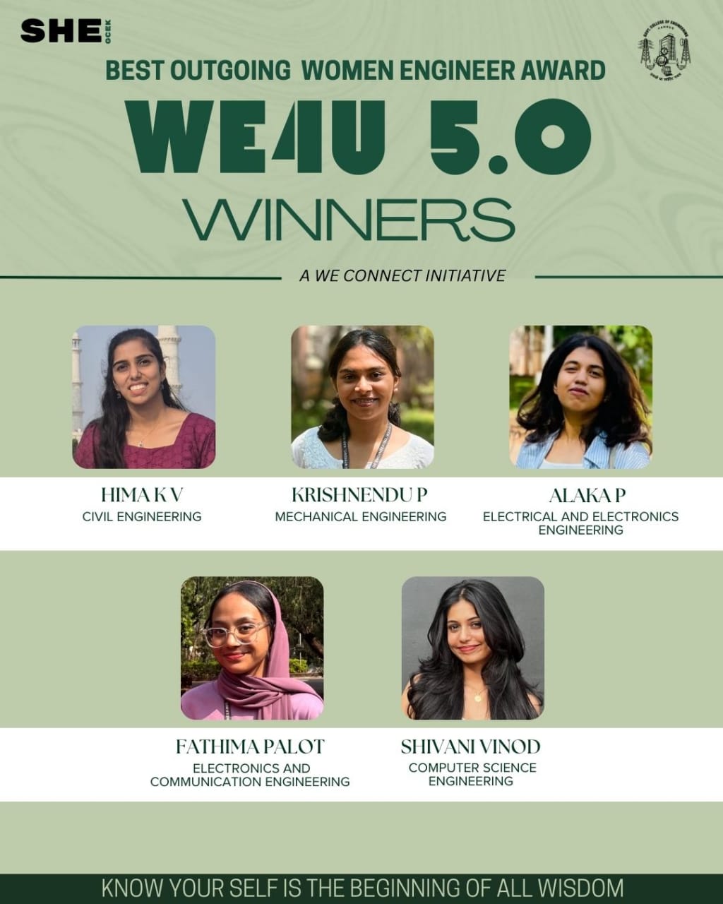 The We4U Best Outgoing Woman Engineer Award constituted by WE-Connect, the group of alumna of Gcek,